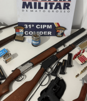 Uma ação da Polícia Militar resultou na apreensão de um arsenal de armas de fogo e mais de 500 munições na tarde de ontem, durante uma abordagem na estrada Planalto, na zona rural de Colíder. Ao todo, cinco homens foram conduzidos para prestar esclarecimentos à Polícia Civil.