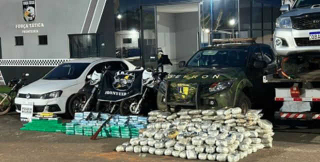 Todo o entorpecente, armamento e os três suspeitos foram encaminhados à Polícia Civil, que agora investiga a origem da carga e possíveis conexões com o crime organizado atuante na região de fronteira.