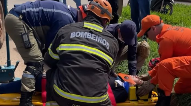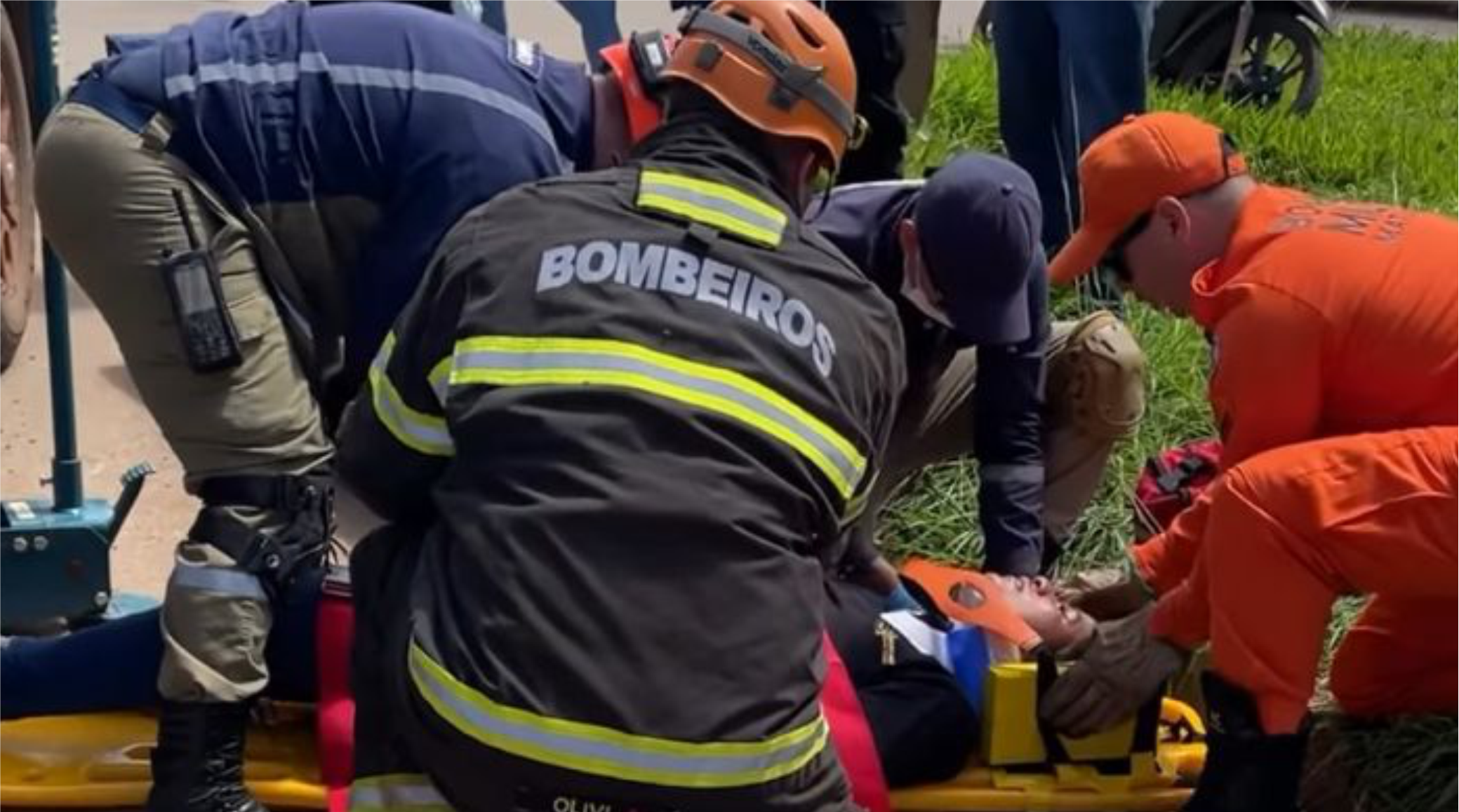 Com o impacto, a motocicleta ficou embaixo do veículo, e a vítima uma mulher foi socorrida e encaminhada para atendimento hospitalar. Apesar dos danos visíveis na moto, a avaliação inicial indicou ausência de fraturas ou lesões de maior gravidade.