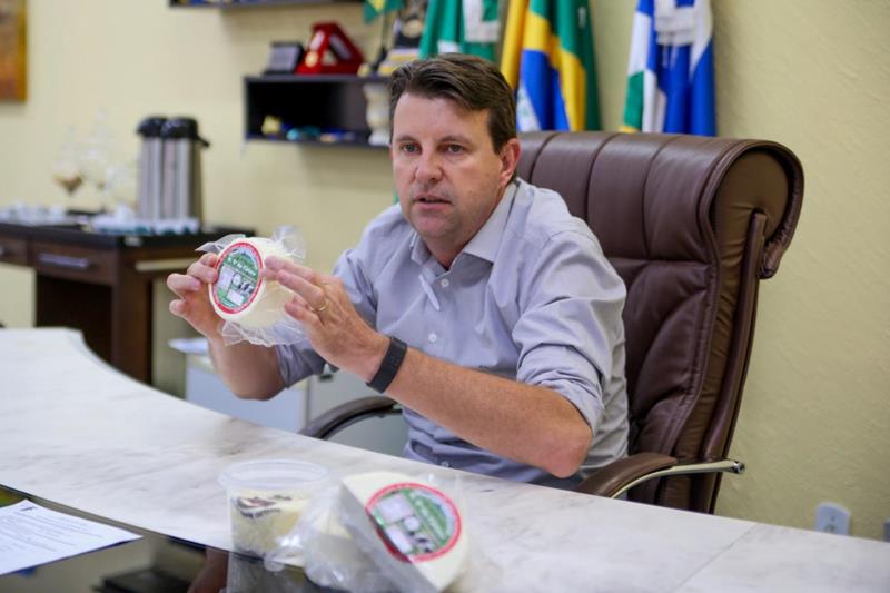 O prefeito de Sorriso, Ari Lafin, recebeu nesta quarta-feira (4), a visita de pequenos produtores do Assentamento Jonas Pinheiro (Poranga). Acompanhados pelos secretários de Agricultura e Meio Ambiente, Márcio Kuhn, de Governo, Marlon Zanella, e o vereador Dirceu Zanatta, os produtores de leite trouxeram amostras de queijos produzidos no assentamento, todos com Selo de Inspeção Municipal (SIM).