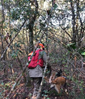 No local a vítima teria adentrado a mata fechada. Utilizando o cão especialista em rastreio, os militares realizam buscas na região, sendo localizado na mata itens de higiene pessoal que podem ser pertences da vítima.