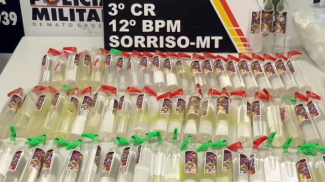 No interior do imóvel, os militares localizaram 64 frascos de lança-perfume, parte do material já pronta para venda. O entorpecente estava acondicionado em embalagens de vidro, o que aumenta o risco de acidentes, já que se trata de uma substância altamente inflamável.