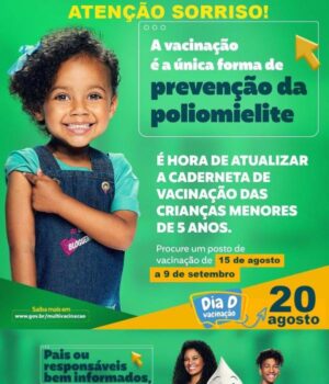 Vale ressaltar que ente os dias 15 de agosto a 9 de setembro, serão aplicados 18 tipos de vacinas que protegem crianças e adolescentes de doenças como poliomielite, sarampo, catapora, caxumba, HPV e meningite, dentre outras. E como informação nunca é demais, é bom lembrar que no momento da matrícula ou rematrícula, as escolas exigem a caderneta vacinal atualizada, então essa é uma oportunidade para deixar tudo ok.