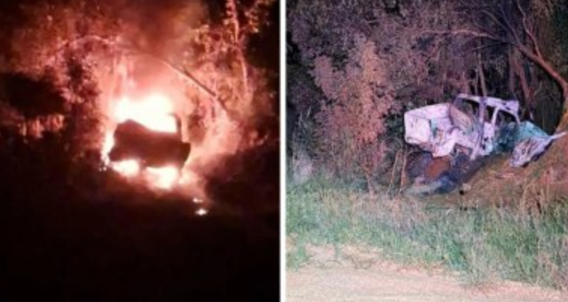 Polícia Militar e Bombeiros atenderam a ocorrência; vítimas eram vendedores de insumos agrícolas e morreram carbonizadas dentro da caminhonete.