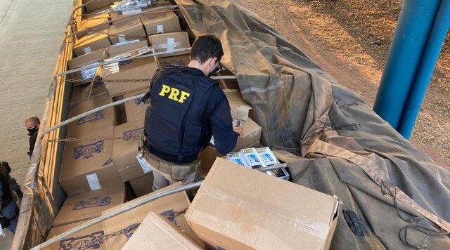 Uma carga com 286 mil maços de cigarro foi apreendia pela Polícia Rodoviária Federal (PRF) em conjunto com a Polícia Militar na tarde dessa quarta-feira (19), em Santo Antônio do Leverger, a 35 km de Cuiabá.