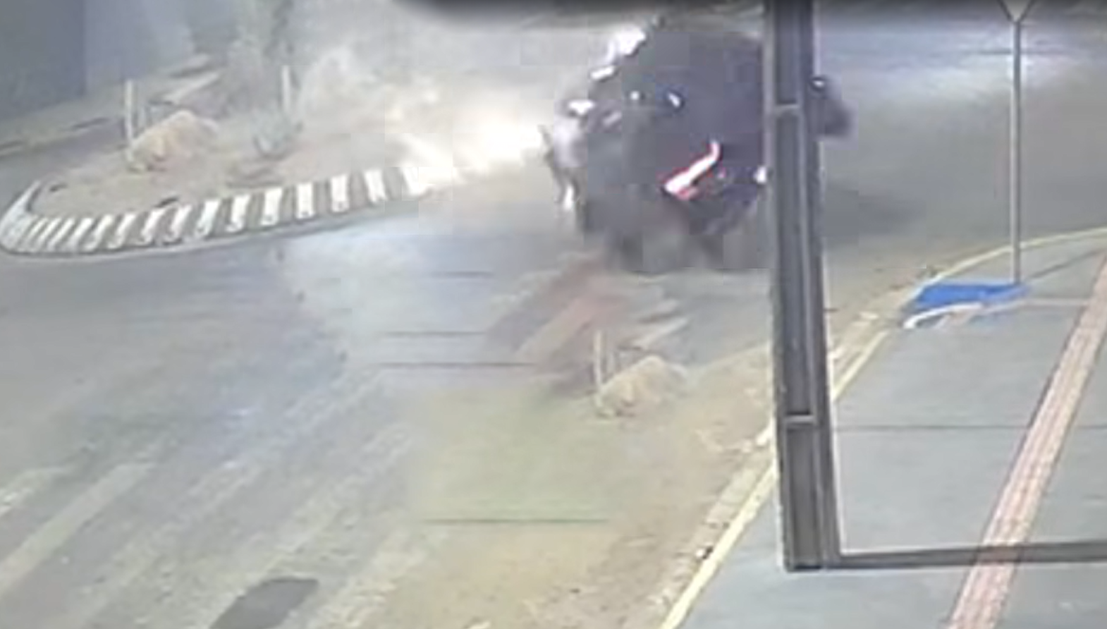 Câmeras de monitoramento registraram o momento do acidente. Por volta das 4h47, o veículo seguia pela via quando o condutor perdeu o controle ao atingir o meio-fio da rotatória. Com o impacto, o carro chegou a “rampiar” o obstáculo, capotando várias vezes até parar parcialmente sobre a calçada.