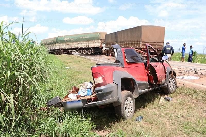 No veículo viajava um casal identificado como Joel Marcelino da Silva, 68 anos, e Ivonice Pereira de Assis, 50 anos, ambos morreram na hora. Os motoristas das duas carretas envolvidas no acidente não ficaram feridos e assinaram o termo de recusa de atendimento.
