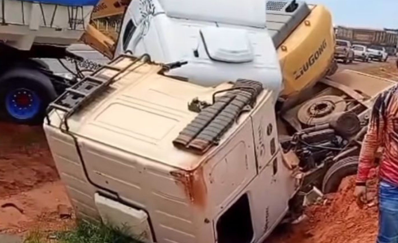 Um acidente envolvendo duas carretas uma Volvo FH 460 basculante e uma Scania R450, ambas brancas foi registrado no início da tarde desta terça-feira no perímetro urbano da BR-163, em Sorriso. A colisão foi frontal e deixou um dos motoristas ferido.
