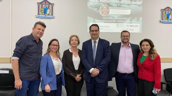 Encerrando a Semana da Justiça Restaurativa em Sorriso, que aconteceu entre os dias 17 e 21 de outubro, a presidente do Núcleo Gestor da Justiça Restaurativa de Mato Grosso (Nugjur), desembargadora Clarisse Claudino da Silva ministrou a palestra ‘A Justiça Restaurativa como instrumento de paz social’, que aconteceu na tarde da última sexta-feira (21), no plenário do Tribunal do Júri do Fórum da Comarca de Sorriso.