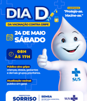 No próximo sábado, 24 de maio, 23 PSFs (Posto de Saúde da Família), estarão abertas das 8h às 17h, sem interrupção para o almoço, em função do Dia D de vacinação contra a gripe e da campanha de multivacinação. A vacina contra a gripe está disponível para crianças, idosos, gestantes e demais grupos prioritários.