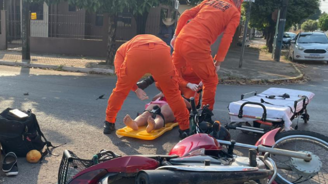 Um acidente entre duas motocicletas deixou duas pessoas feridas na manhã desta quarta-feira (8), no cruzamento da Avenida Curitiba com a Rua Nápolis, no bairro Jardim Itália. As vítimas foram socorridas pelo Corpo de Bombeiros e encaminhadas à UPA (Unidade de Pronto Atendimento), sem ferimentos graves.