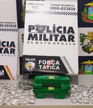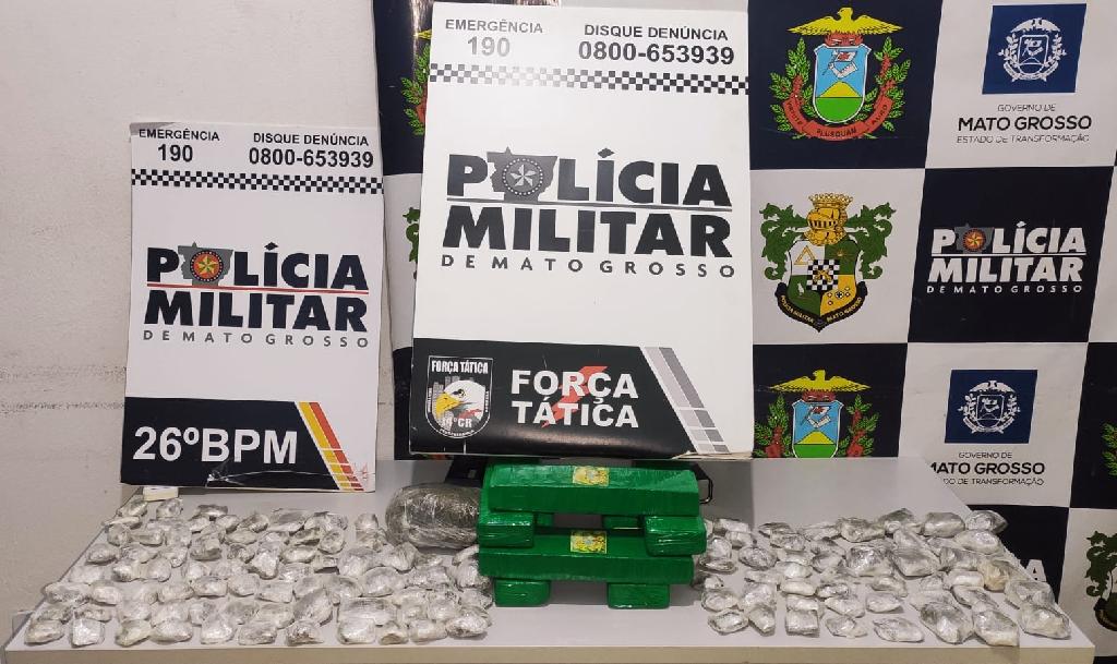 Policiais militares da Força Tática prenderam dois homens, de 24 e 29 anos, por tráfico ilícito de drogas, na noite desta quarta-feira (25.05), em Nova Mutum. Na ação, foram apreendidos sete tabletes e 130 porções de maconha e R$ 861,00 em dinheiro.