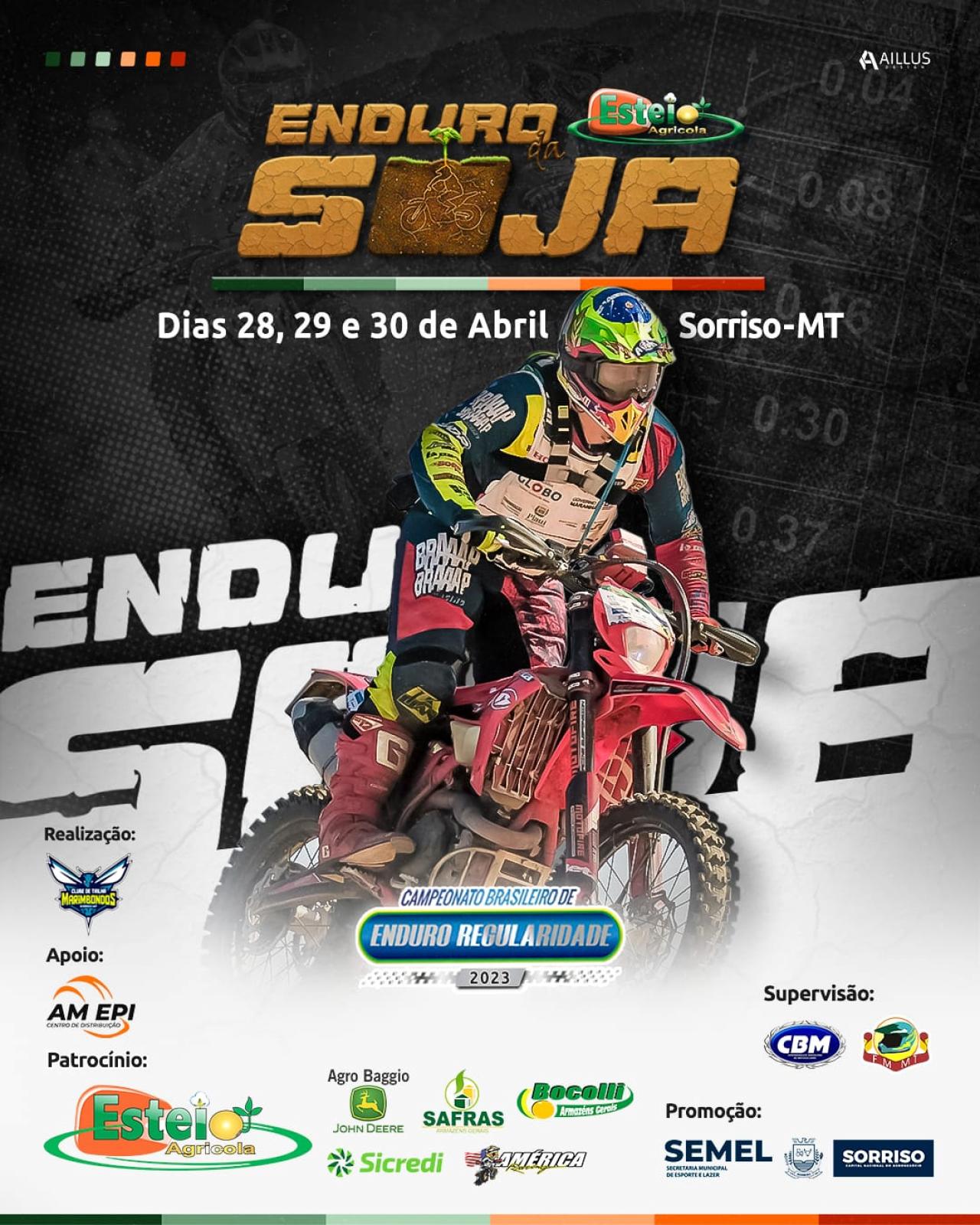 O final de semana será de muita adrenalina, em Sorriso. Durante os dias 28,29,30 de abril (sexta, sábado e domingo), o Município recebe o 18º Enduro da Soja, um evento tradicional que reúne centenas de pessoas apaixonadas por duas rodas.