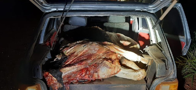 Dentro do carro, os militares encontraram a vaca esquartejada e ferramentas como facas e machados, usados para matar o animal.