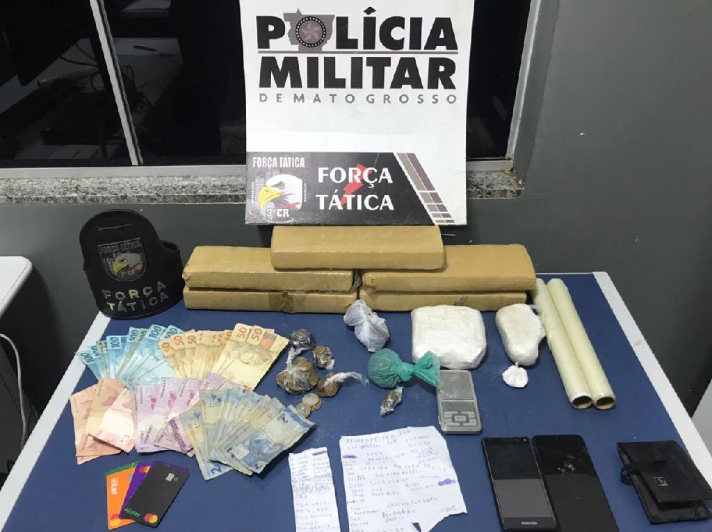 Policiais militares da Força Tática do 3º Comando Regional prenderam, na noite desta segunda-feira (12.12), em Sinop, um homem de 21 anos e uma mulher de 19 anos, suspeitos de associação para tráfico de drogas. Com eles, foram apreendidos tabletes, porções de maconha e a quantia de R$ 1,8 mil.