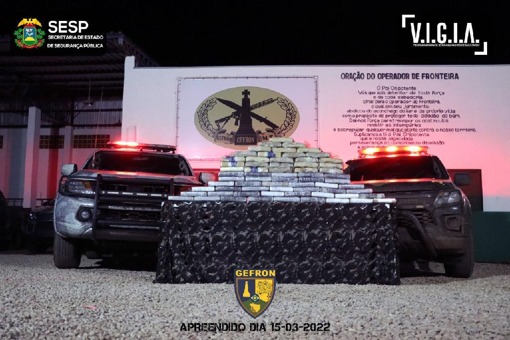 O Grupo Especial de Segurança de Fronteira (Gefron) apreendeu 65 tabletes de cocaína, nesta terça-feira (15.03), durante patrulhamento no município de Porto Esperidião (322 km de Cuiabá), região de fronteira com a Bolívia. O entorpecente apreendido rendeu 68 quilos e está avaliado em mais de R$ 1,5 milhão.