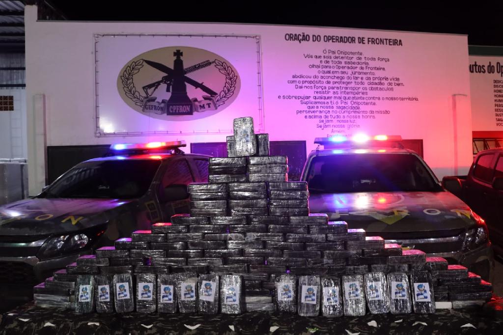 Três homens foram presos, nesta terça-feira (03.05), com uma carga de 145,1 quilos de entorpecentes, avaliada em R$ 2,9 milhões, em uma zona rural no município de Porto Esperidião (322 km de Cuiabá).