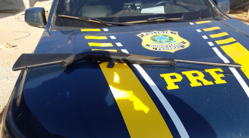 A equipe PRF procedeu a uma busca no local e localizou uma arma de fogo, do tipo carabina calibre 22 (municiada e alimentada), contendo dois carregadores e cinquenta e sete munições intactas.