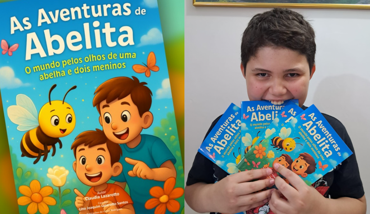 Um livro escrito a quatro mãos. Duas adulta e duas infantil. Esse é o mundo retratado em “As aventuras de Abelita: o mundo pelos olhos de uma abelha e dois meninos”, escrito pela jornalista Claudia Lazarotto em parceria com o filho, Lino Joaquim, de 10 anos. A história de Abelita e dos dois meninos – Lino e Vico, será lançada para o público infantil na segunda-feira, dia 06 de outubro, às 16 horas na Biblioteca Municipal Monteiro Lobato.