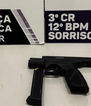 Durante a busca pessoal, os policiais localizaram uma pistola calibre 9mm, da marca Taurus, modelo TS9, acompanhada de 18 munições intactas e um carregador. A posse do armamento, sem autorização legal, agravou a situação do suspeito.