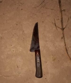 A Polícia Militar foi acionada por volta das 19h, pela mãe do acusado. Quando os militares chegaram na residência, a vítima relatou que seu filho estava em posse de uma faca do tipo peixeira para matar ela e o esposo.