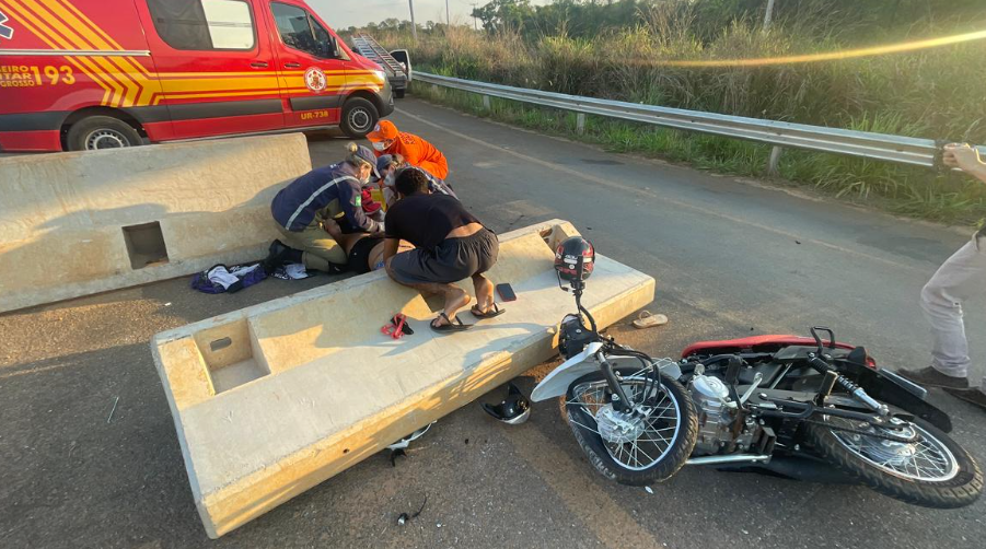 O choque foi tão intenso que parte da estrutura pré-moldada chegou a cair sobre a parte dianteira da moto, que por pouco não atingiu a condutora. Após receber os primeiros atendimentos no local, a mulher foi imobilizada e encaminhada ao Hospital Regional de Sorriso para avaliação médica. O caso será apurado pelas autoridades de trânsito para verificar as condições de sinalização e segurança na via.