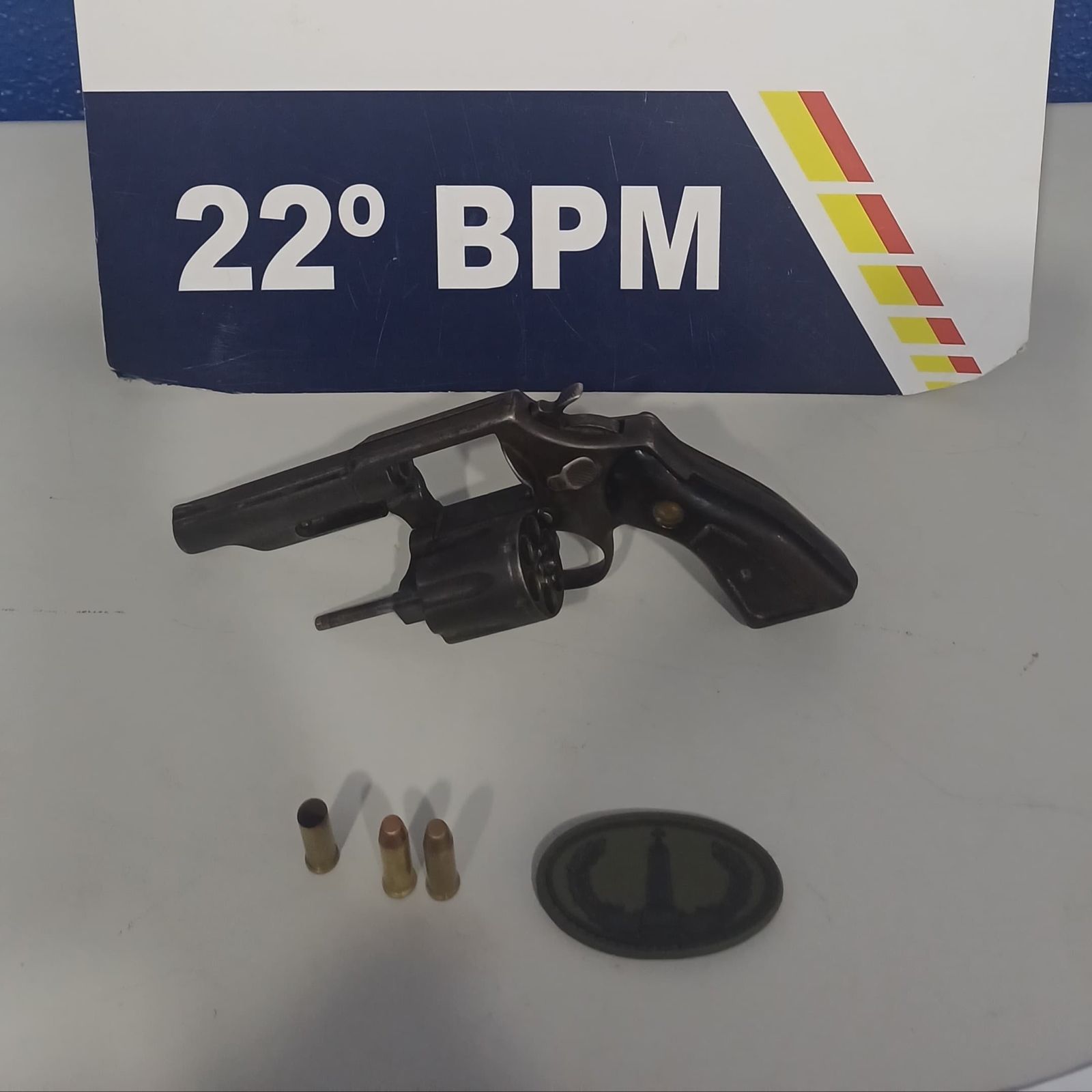 As equipes policiais intensificaram as rondas na cidade e encontraram o suspeito transitando com uma motocicleta, com as mesmas características, pela rodovia BR-163. Os militares abordaram o homem e encontraram com ele um revólver calibre .38 carregado com três munições.