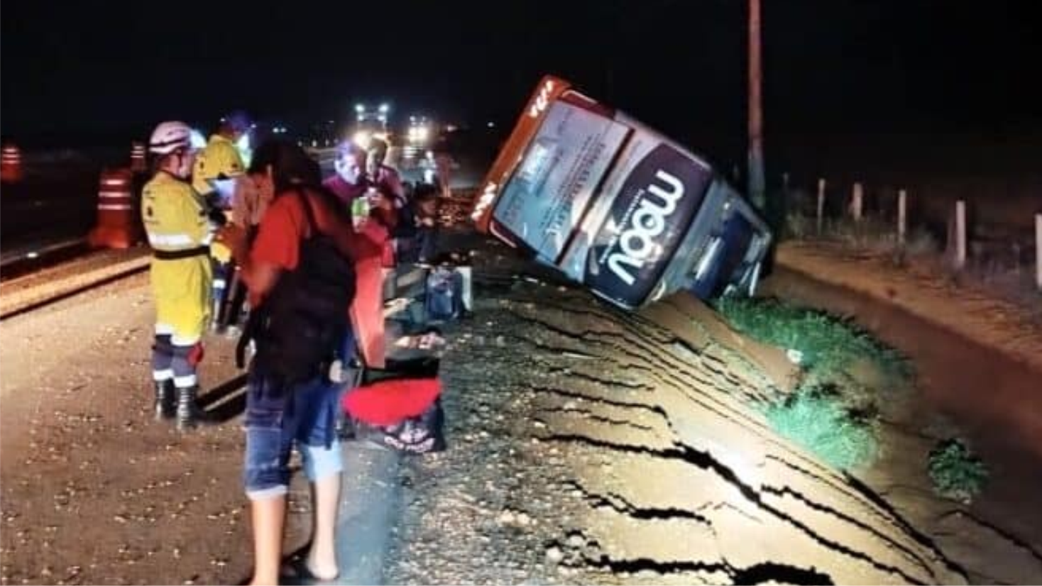 Um ônibus com 26 passageiros tombou na madrugada desta quarta-feira, por volta de 1h30, no km 678 da BR-163, em Lucas do Rio Verde. O veículo seguia no sentido Sinop–Cuiabá e transportava pacientes encaminhados pela Secretaria Municipal de Saúde de Sinop para tratamento médico na capital.
