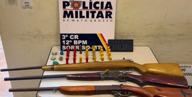 Durante a operação, os agentes apreenderam duas espingardas calibre 28, uma espingarda calibre 20, além de munições compatíveis com os armamentos e porções de maconha, encontradas no interior da residência vistoriada. O material estava em desacordo com a legislação vigente.