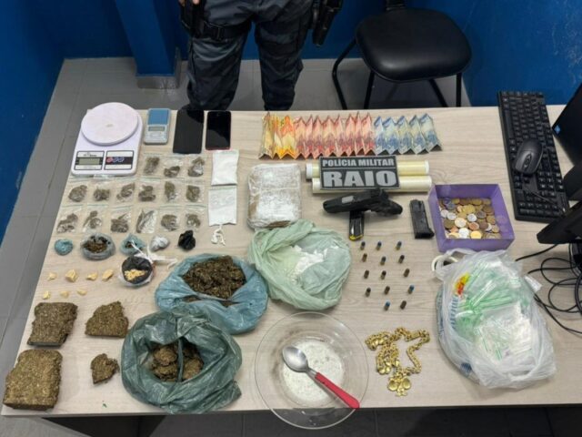 Os militares do Raio foram até o segundo endereço e encontraram mais porções de cocaína e maconha e pedras de pasta base. Também foram localizadas balanças de precisão e materiais para embalagem das drogas.