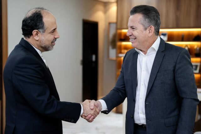 O governador Mauro Mendes recebeu o embaixador do Irã no Brasil, Abdollah Nekounam Ghadiri, e apresentou o grande potencial para novos investimentos em Mato Grosso. O encontro ocorreu nesta quarta-feira (07.08), no Palácio Paiaguás, em Cuiabá.