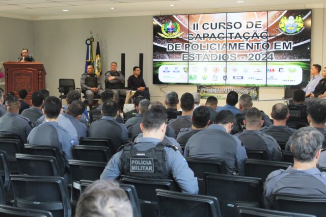 A Polícia Militar de Mato Grosso realizou a aula inaugural do 2º Curso de Capacitação de Policiamento em Estádios, na tarde desta segunda-feira (01.07), em Cuiabá. A formação busca o aprimoramento da atuação policial dentro de praças desportivas do Estado.