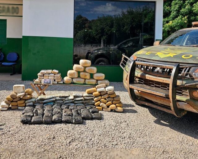 No local, os militares encontraram cinco sacos com 21.5 kg de pasta base de cocaína e 70.3 kg de maconha. O entorpecente foi apreendido e encaminhado para a Polícia Federal no município de Cáceres.