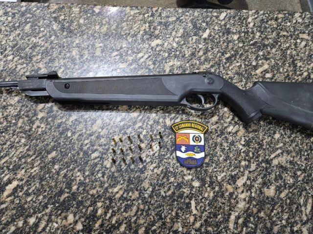 A Polícia Militar de Mato Grosso prendeu um homem, de 55 anos, pelos crimes de ameaça e porte ilegal de arma de fogo, na noite deste domingo (29.6), no município de Vale de São Domingos. Com o suspeito, a PM apreendeu uma espingarda de calibre 22 e 16 munições.