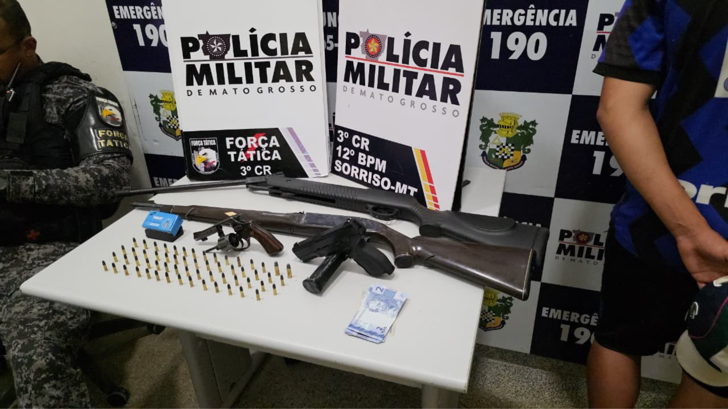 Na segunda-feira, dia 15, a Polícia Militar de Sorriso (MT) prendeu um homem de 49 anos e apreendeu seu filho de 16 anos após uma operação desencadeada por denúncias de ostentação de armas em redes sociais na Zona Leste do município. A ação fez parte de diligências da Força Tática que visavam coibir a presença de armamentos e fortalecer a segurança na região.