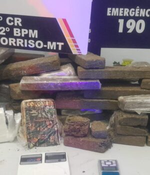 Policiais militares do 12º Batalhão apreenderam, na noite desta quarta-feira (02.10), 33 quilos de entorpecentes entre maconha e cocaína, em uma residência no bairro Morada do Bosque, em Sorriso (396 km de Cuiabá). Na ação, um homem, de 21 anos, foi preso em flagrante por tráfico ilícito de drogas.