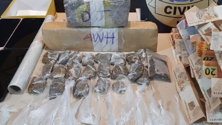 A Polícia Civil de Tangará da Serra (239 km a médio norte de Cuiabá) apreendeu, na manhã deste domingo (24.07), uma grande quantidade de entorpecente e dinheiro, e prendeu um jovem, durante cumprimento de mandado de busca e apreensão.