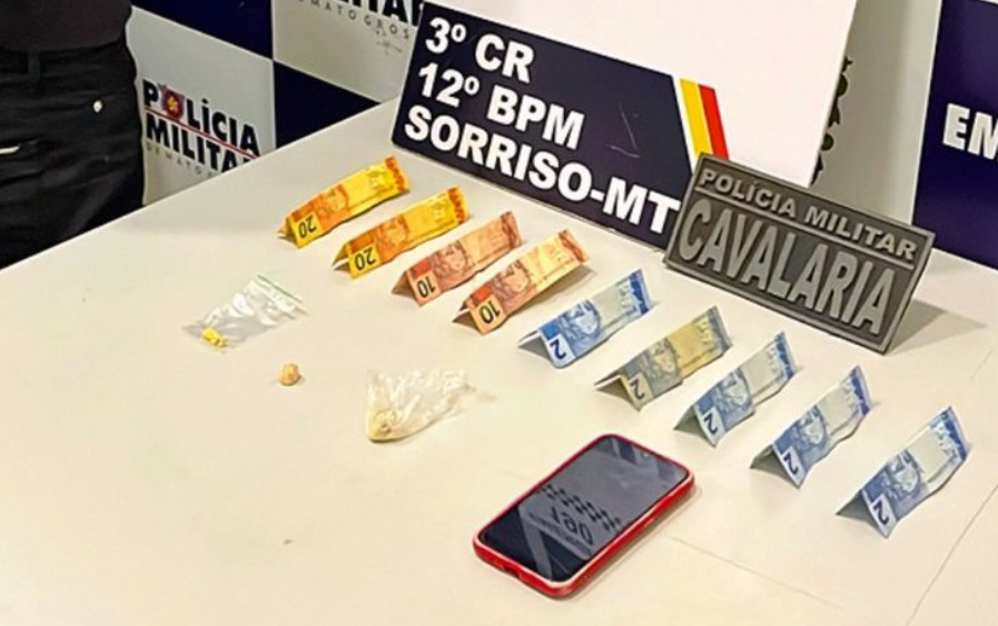 Um homem foi preso na noite desta quinta-feira (28) na zona leste de Sorriso, após ser flagrado com porções de pasta base de cocaína e dinheiro em espécie.