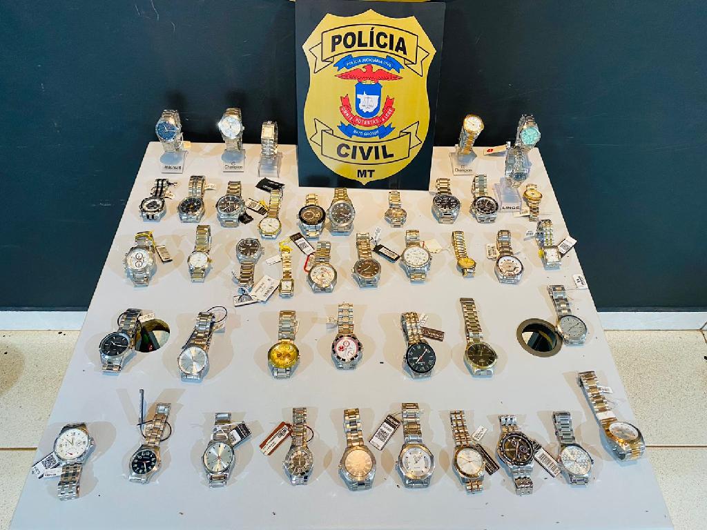 Parte dos mais de 60 relógios furtados de uma ótica e equipamentos levados de uma loja de eletrodomésticos, ambas de Tangará da Serra, foram recuperados na terça-feira (24.05) após investigação da Delegacia da Polícia Civil do município para localizar o autor dos crimes. O suspeito foi localizado em uma residência no bairro Alto da Boa Vista, onde os investigadores apreenderam 40 relógios e equipamentos como chapinha, secadores e escova elétrica de cabelo.