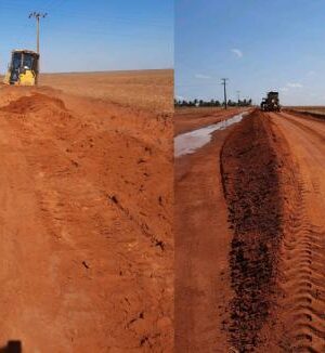 Máquinas estão roncando para que a estrada fique “acima” do limite das lavouras no antigo traçado da MT-140, no Distrito de Boa Esperança. A ação, que está sendo executada em um trecho de 15 quilômetros nesta via, garante que durante o período da chuvarada, a água das lavouras não invada a estrada, evitando grandes estragos que possam impedir.