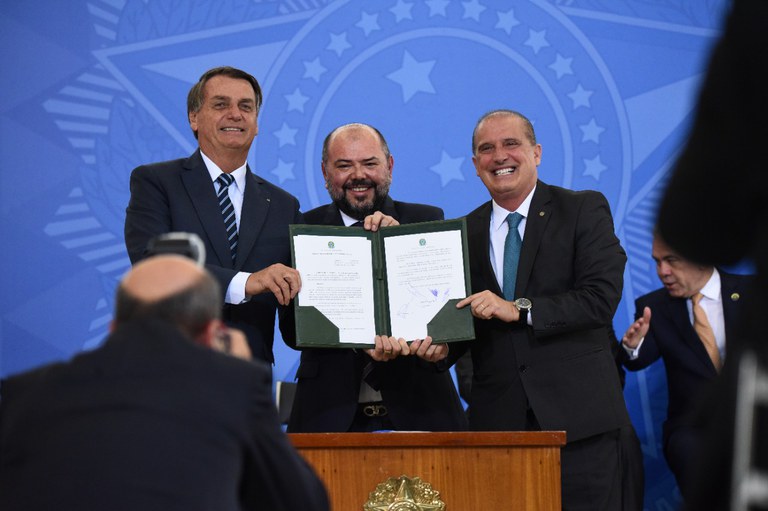 ministro do Trabalho e Previdência, Onyx Lorenzoni, assinou, nesta quarta-feira (2), portaria que altera as regras para a realização da prova de vida por aposentados e pensionistas do INSS. O normativo veda ao Instituto a exigência de comprovação presencial de vida aos aposentados e pensionistas, quando esta implicar o deslocamento dos beneficiários a unidades do INSS ou à instituição financeira pagadora do benefício. As mudanças valerão para os aniversários dos segurados que ocorrerem a partir da data da publicação da portaria. A cerimônia ocorreu no Palácio do Planalto e teve a presença do presidente da República, Jair Bolsonaro.