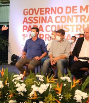 O prefeito de Sorriso, Ari Lafin, participou do ato de assinatura do contrato de adesão para a construção, implantação e exploração da 1ª Ferrovia Estadual de Mato Grosso, realizado nesta segunda-feira (20), em Lucas do Rio Verde.