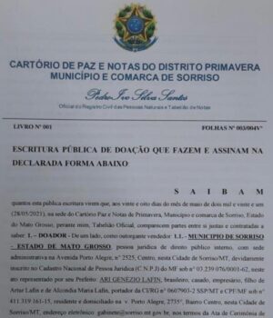 Segundo o tabelião oficial do Cartório, Pedro Ivo Santos, o documento se refere ao registro de um dos 70 lotes do Distrito que estão no nome do Município. Com a assinatura da escritura, se inicia o trabalho de regularização dos lotes, para que cada um dos proprietários possa receber o registro do seu imóvel. “Grande parte do território do Distrito não está regularizada, porque na sua implantação o Município precisou assumir a titularidade para que pudesse ser feito o desmembramento da área. Esse processo de escrituração e registro dos terrenos virá resolver uma situação que se arrasta há anos. Com isso, os moradores terão a matricula em mãos, passando a serem de fato e de direito, donos de seus lotes”, explica o cartorário.
