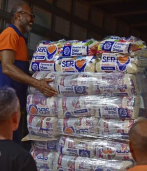 Nesta quinta-feira (16.1), as doações para os municípios de Salto do Céu e Rio Branco foram carregadas e encaminhadas pela Defesa Civil do Estado com o auxílio dos servidores da Secretaria de Estado de Assistência Social e Cidadania (Setasc). Com a supervisão do secretário adjunto, Emerson Toledo, a mobilização foi coordenada pela primeira-dama de Mato Grosso, Virginia Mendes, por meio dos Programas SER Família Solidário e Aconchego, idealizados por ela com apoio do Governo do Estado.