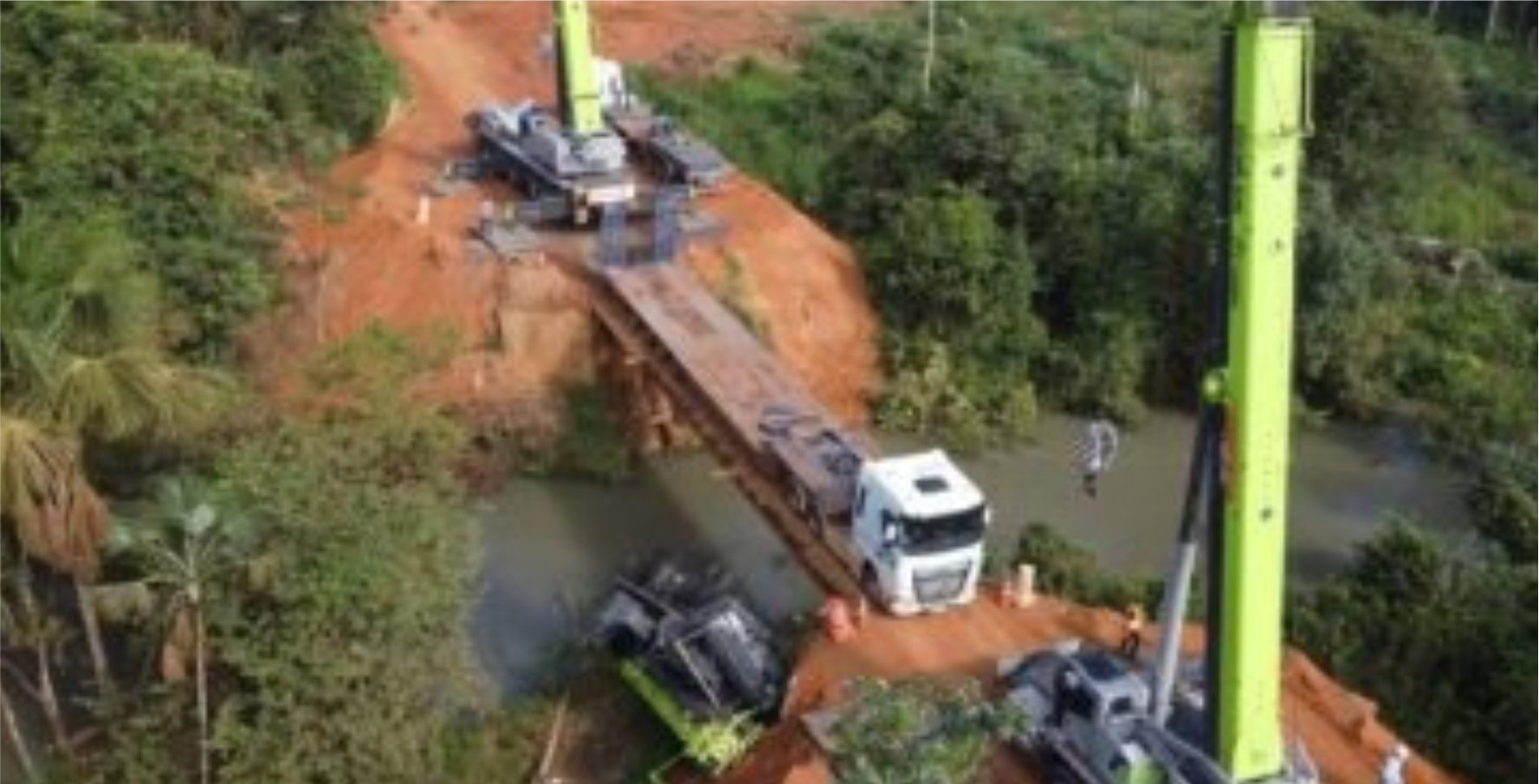 Teve início nesta quinta-feira (29) a operação para retirada de um guindaste que caiu sobre uma ponte de madeira no Córrego Grande, conhecido como Corgão, localizado na MT-560, trecho que liga os municípios de Sorriso e Tapurah. O acidente ocorreu há cerca de uma semana e, desde então, a passagem permanece totalmente interditada.