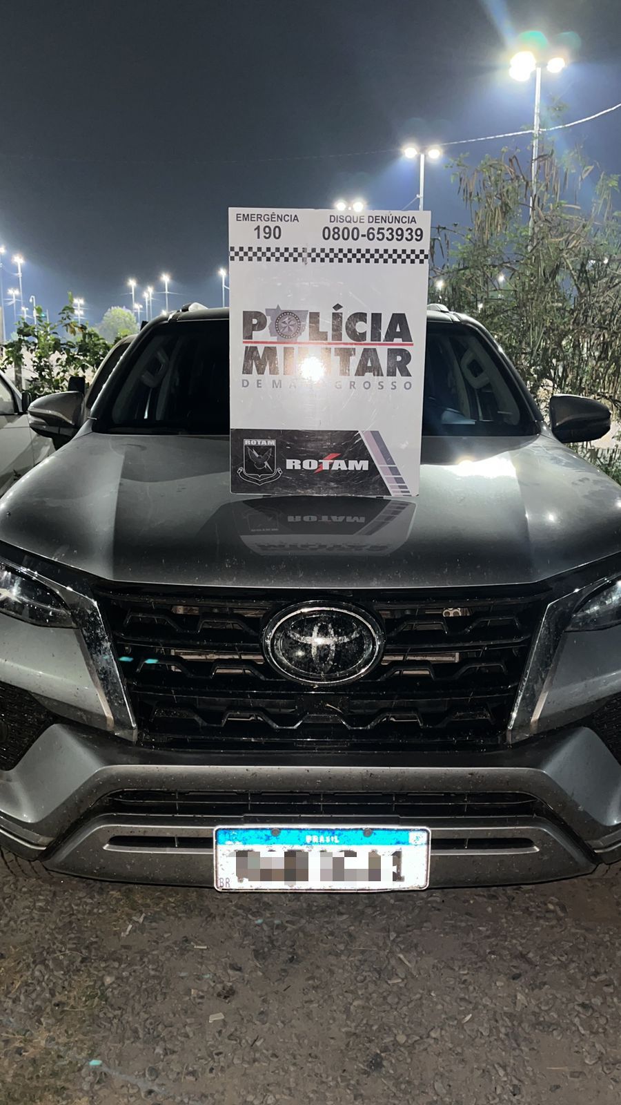 Em seguida, outras equipes da Rotam foram ao local da primeira tentativa de abordagem e encontraram a caminhonete SW4 prata escondida no terreno baldio. Em checagem, foi identificada queixa de furto, registrada horas antes.