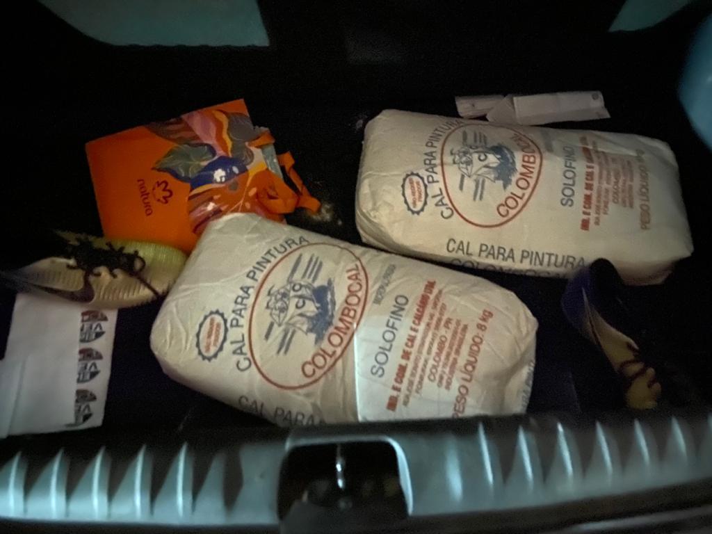 Na garagem da casa desse suspeito, no porta-malas de um veículo Ônix, de cor vermelha, havia dois sacos de cal, cada um de 8 quilos. Sobre a cal que estava no porta-malas, material usado comumente na construção civil, o suspeito disse que seria para acelerar o processo de decomposição, diminuir o odor e ajudar na ocultação do corpo da vítima. No quarto, em um móvel, foi localizado e apreendido 1kg de maconha.