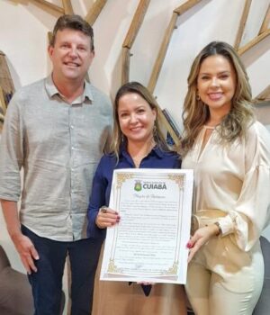 Reconhecimento. A secretária de Assistência Social e primeira-dama de Sorriso, Jucélia Ferro, recebeu, na manhã desta quinta-feira (23 de março) das mãos da vereadora cuiabana Michelly Alencar, uma Moção de Aplausos.