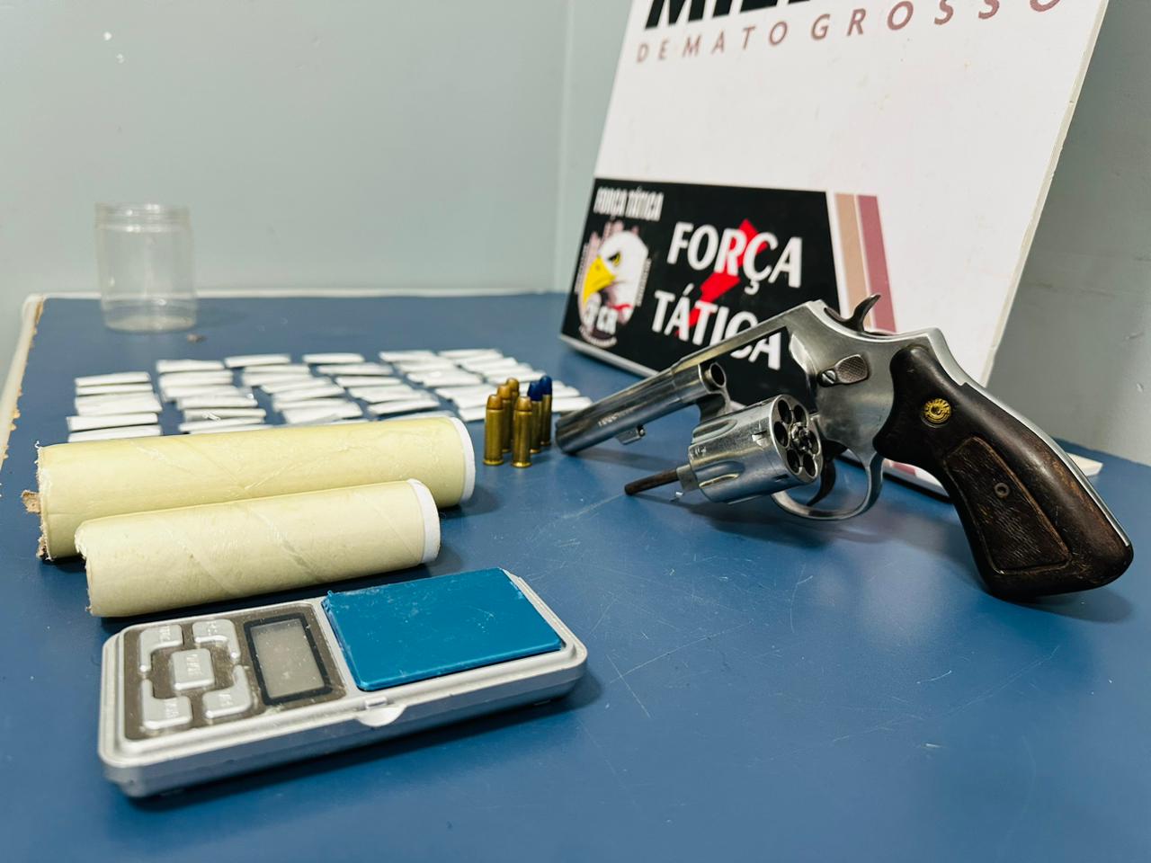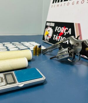 Equipes da 26ª Companhia Independente de Força Tática apreenderam, na madrugada desta quinta-feira (25.07), 47 porções de substância análoga à cocaína, um revólver .38 e seis munições do mesmo calibre. Os militares ainda prenderam um homem 26 anos suspeito por associação criminosa, tráfico e porte ilegal de arma de fogo em Sinop (480 km de Cuiabá).