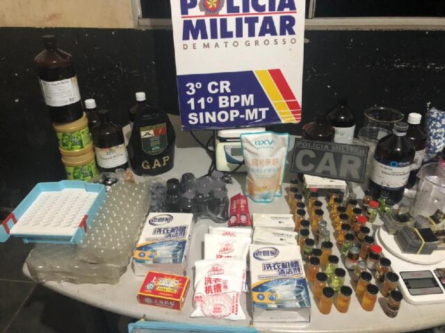 Na casa onde o suspeito estava antes de ser detido, no bairro Jardim Araguaia, os policiais encontraram mais um homem envolvido na ação criminosa. No imóvel, foram apreendidas 35 ampolas com líquido amarelo. O suspeito preso disser ser vendedor dos produtos. Ele apontou o laboratório, uma casa no bairro Alto da Glória.